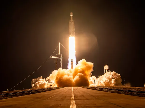 Falcon Heavy, compusă din trei nuclee de rachetă cu combustibil lichid legate între ele, a decolat în forţă de pe rampa de lansare de la Centrul Spaţial Kennedy al NASA de la Cape Canaveral, într-o lansare spectaculoasă transmisă în direct pe internet.