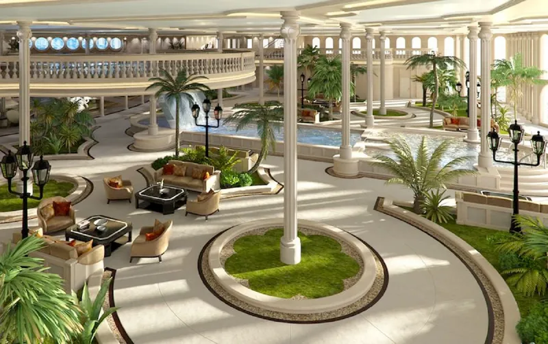 Această zonă regală, care servește ca principal punct de îmbarcare pentru navă, este inspirată de grădinile rafinate ale Cazinoului din Monaco.