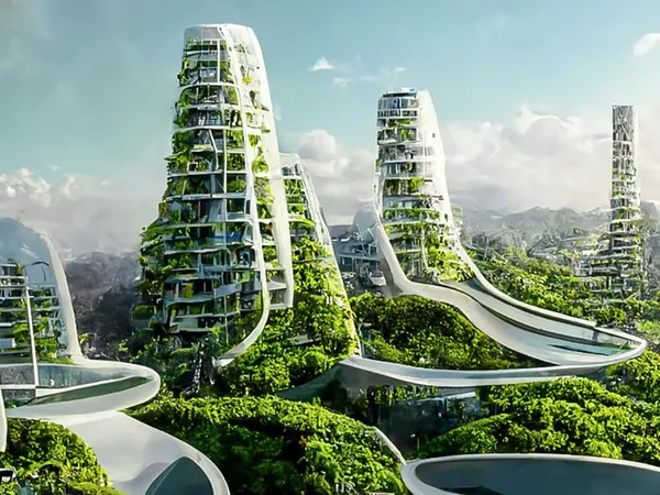 Inteligența artificială a luat datele oferite de arhitect, printre care se află și accentul pus pe ecologie, și a desenat un oraș în care zgârie-norii rezidențiali sunt acoperiți de copaci, plante și alge care acționează ca „turnuri de purificare a aerului”.