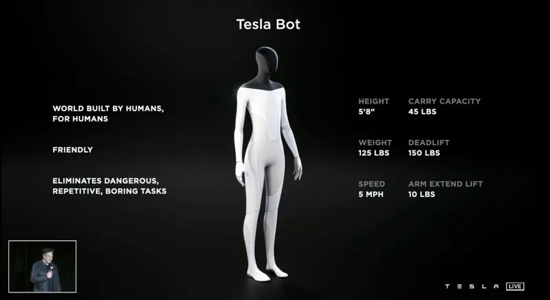 Cunoscut și sub numele de Tesla Bot, umanoidul robot va avea într-o zi „potenţialul de a fi mai semnificativ decât afacerea cu vehicule”, a spus Musk.