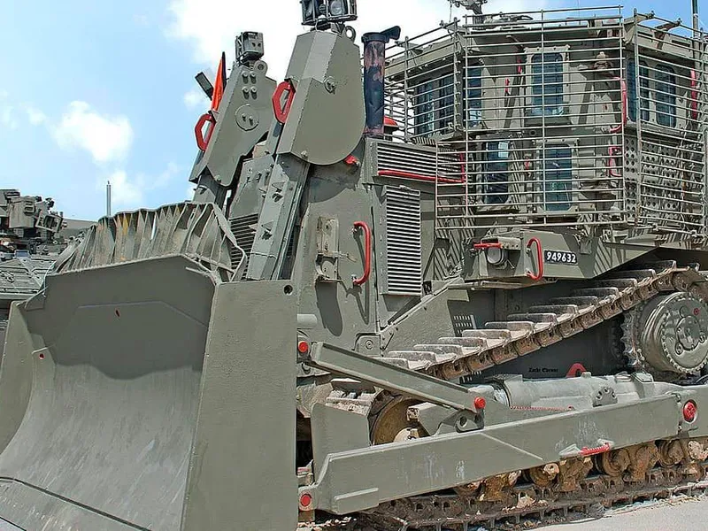 Israel are în fruntea ofensivei un excavator blindat de 1.000.000$ care deschide calea soldaților împotriva Hamas. Excavatorul are rolul de a-i proteja pe soldați.