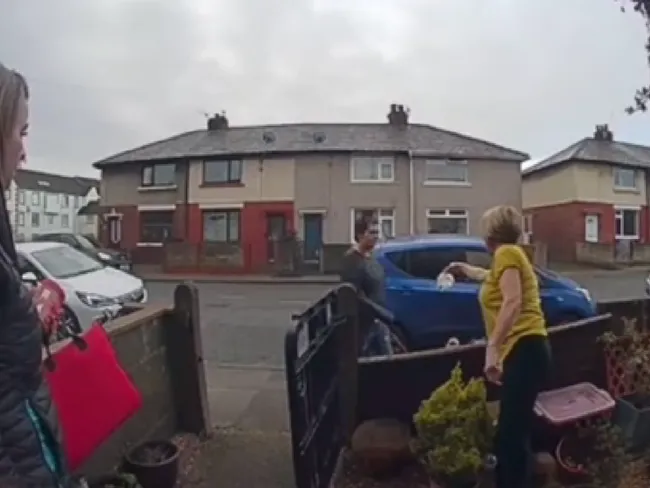Andrea Whiteside, în vârstă de 53 de ani, a fost filmată în timp ce aștepta ca vecinii ei să treacă pe acolo, înainte de a le înmâna rapid mizeria făcută de animal.