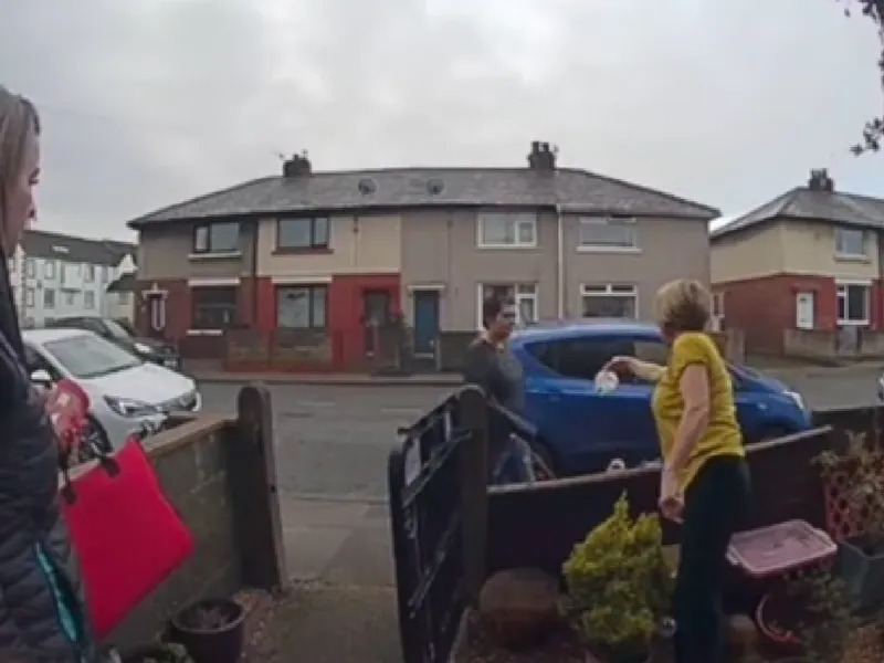 Dar câinele, aparent jignit de vecin, lovește gardul și îl răstoarnă.Andrea, din Lancaster, a declarat: "Consider că, în calitate de națiune de proprietari de câini, este responsabilitatea noastră să facem curat după câinii noștri.