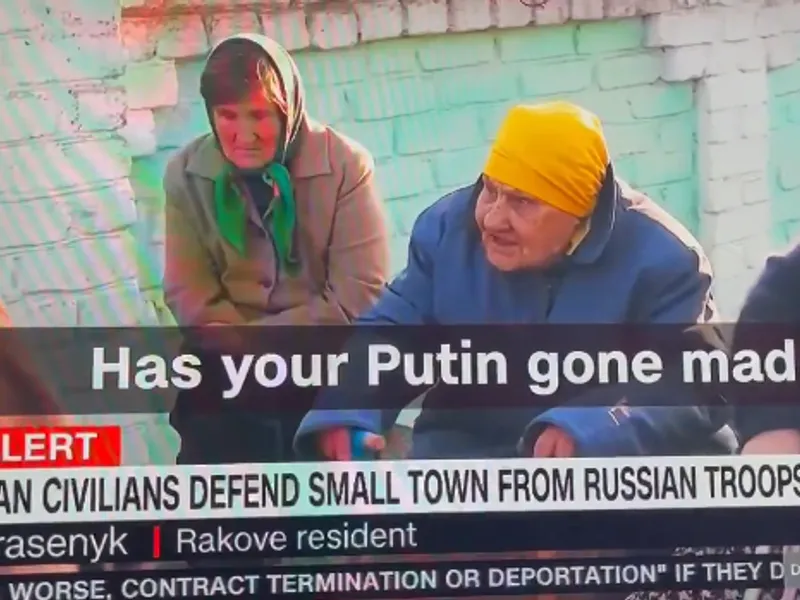 VIDEO Curajul nebun al unei bătrâne ucrainene: îl înjură pe Putin în fața unui soldat rus