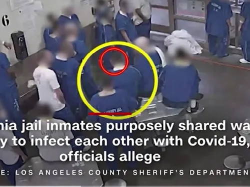Șeriful a prezentat o înregistrare video, în care se vede cum mai mulţi deţinuţi beau dintr-un recipient contaminat de un coleg infectat cu SARS-CoV-2, care poate provoca boala COVID-19, şi apoi îl ascund.