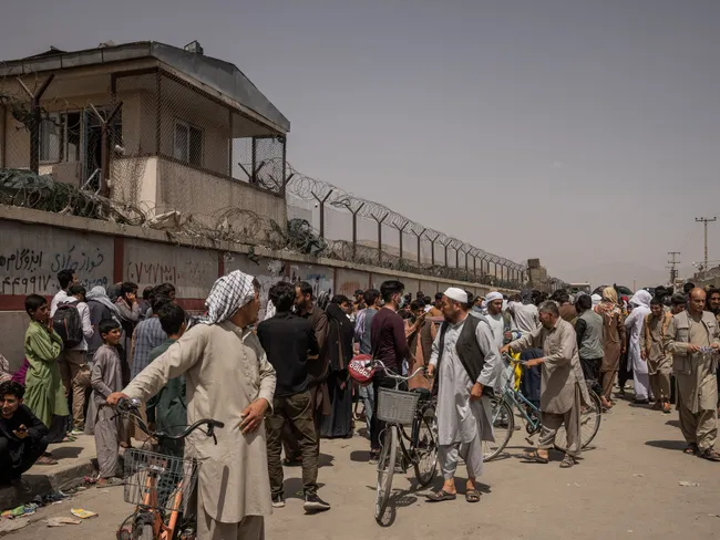 Mii de afgani sunt blocaţi pe aeroportul internaţional din Kabul între punctele de control ale talibanilor şi un ţarc de sârmă ghimpată ridicat de armata americană, încercând cu disperare să se urce în orice avion care decolează, pentru a fugi de regimul fundamentalist.