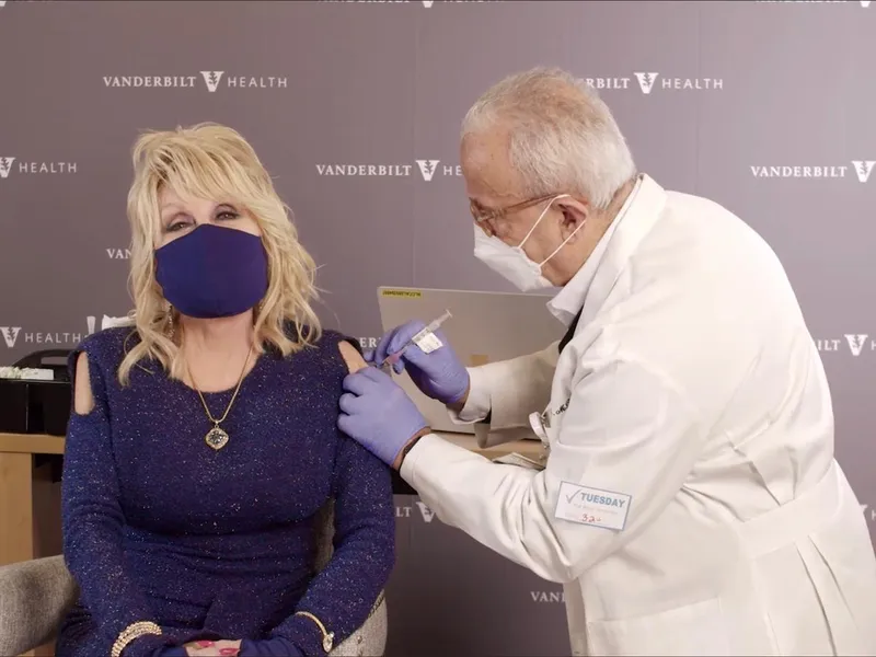 Dolly Parton i-a încurajat şi pe alţii să se vaccineze şi a anunţat că şi-a modificat chiar una dintre piese pentru a se potrivi cu această ocazie. Parton a râs în timp ce cânta parodia, în care numele "Jolene" a fost înlocuit cu "vaccin".