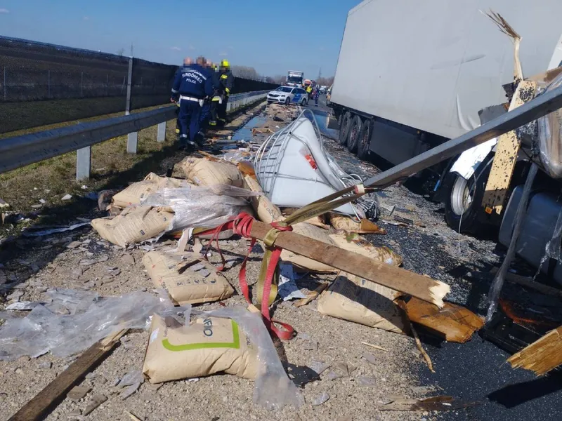 VIDEO Două camioane românești, accident groaznic în Ungaria. „I-a secționat gâtul la impact”