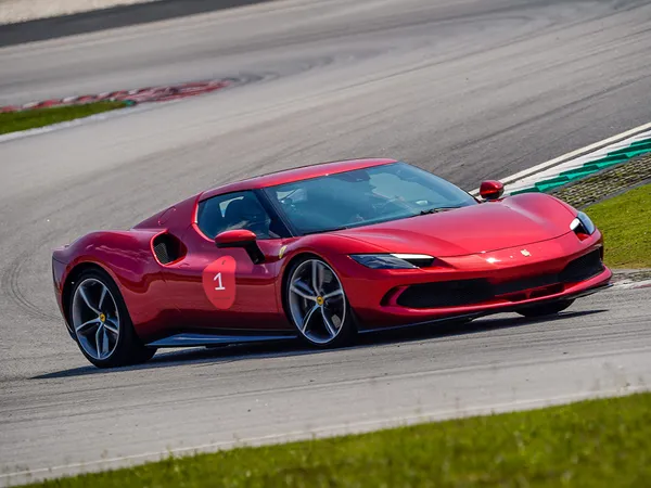 Primul Ferrari - un 296 GTB roșu - a lovit frontal peretele de beton și a suferit daune considerabile.