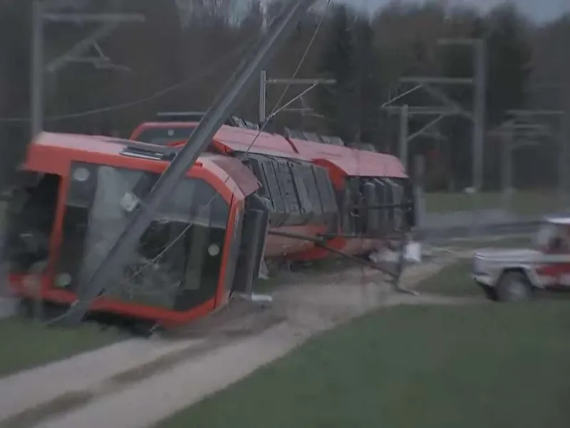 Două trenuri au sărit de pe șine, pe fondul unei furtuni puternice. În urma celor două accidente, care au avut loc aproape simultan în nord-vestul Elveţiei, 15 persoane au fost rănite.