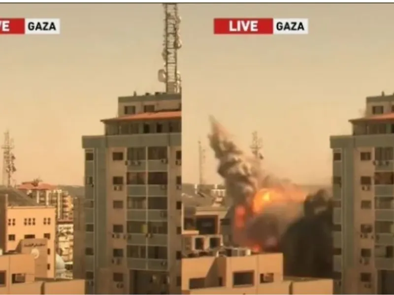 Un bloc turn din Gaza unde se aflau sediile redacțiilor Associated Press și Al Jazeera s-a prăbușit ca urmare a unui atac aerian lansat de armata israeliană.