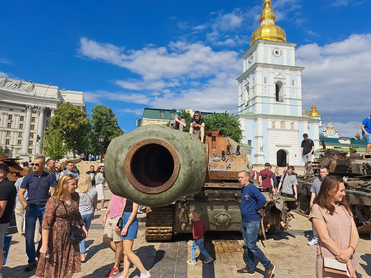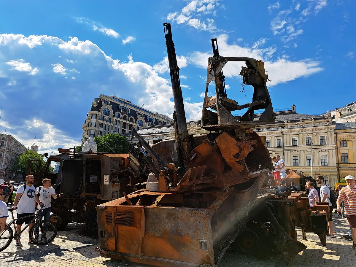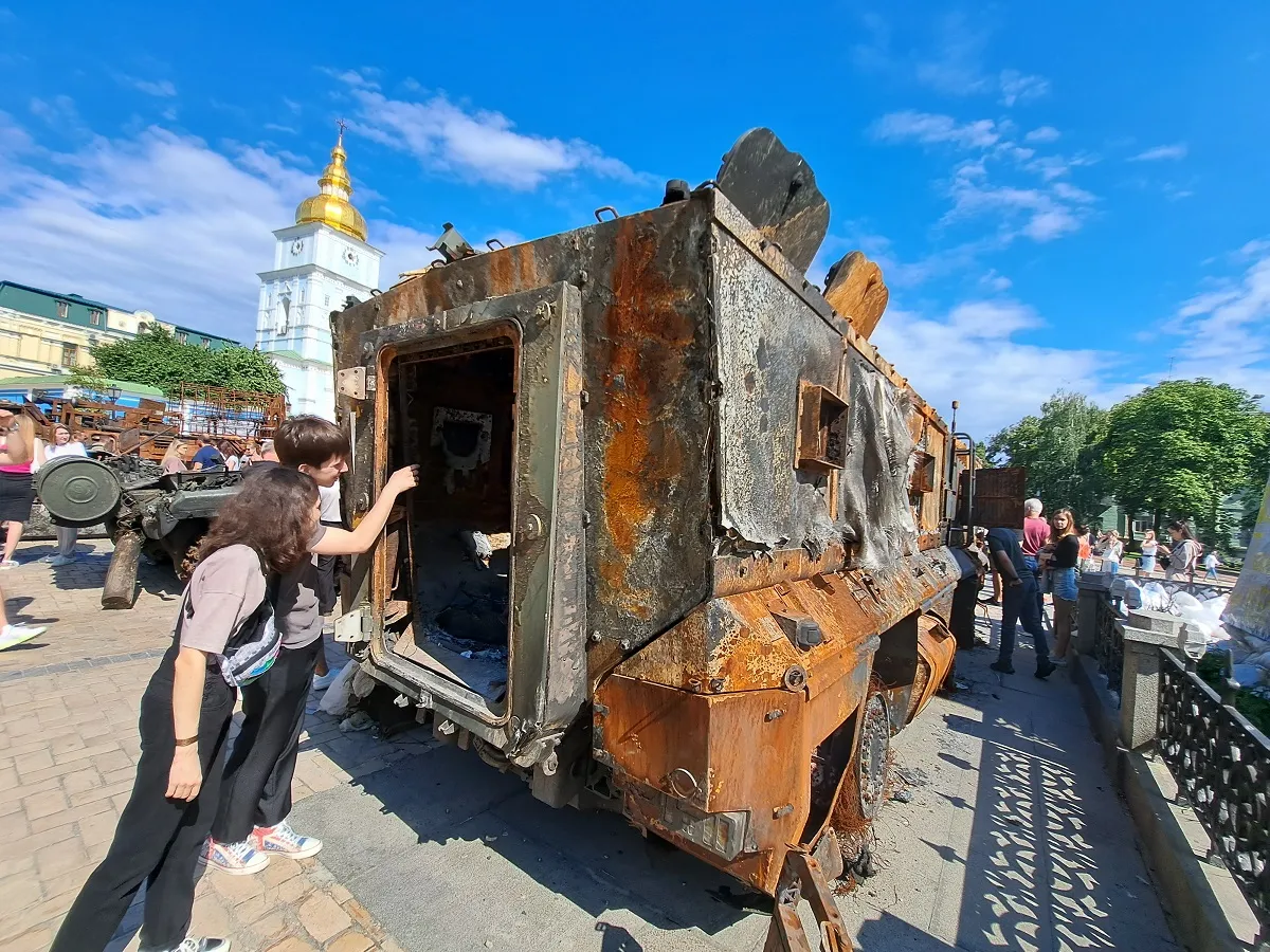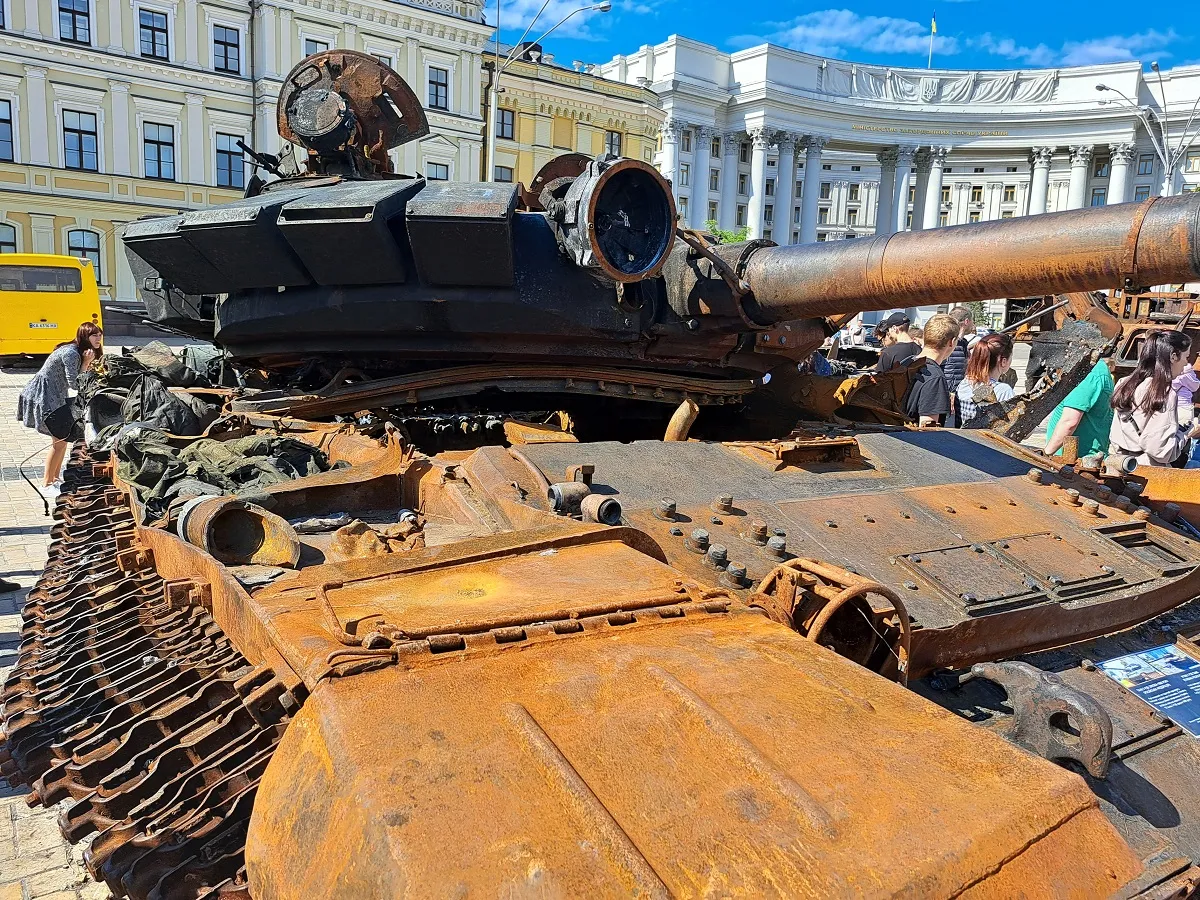 Singurele tancuri, blindate și piese de artilerie rusești care au ajuns la Kiev, de la începutul acestui război, sunt cele aduse în cimitirul tancurilor amenajat în Piața Sfântul Mihail.