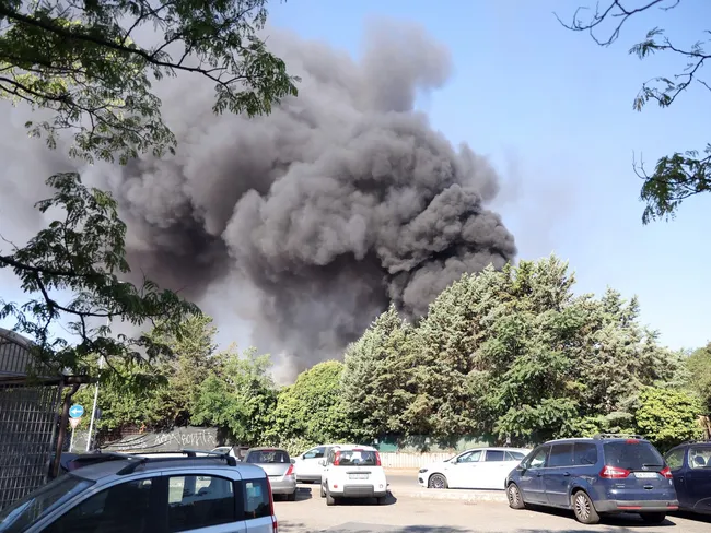 Site-ul de știri Roma Today a publicat o fotografie în care apare un nor uriaș de fum deasupra benzinăriei în flăcări.