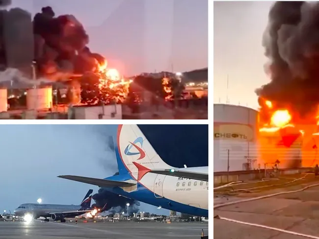 In Sochi, Russia, after a UAV hit, a diesel fuel tank near the Adler airport is burning heavily, - rosmedia 😈 pic.twitter.com/US1gF4fPOj