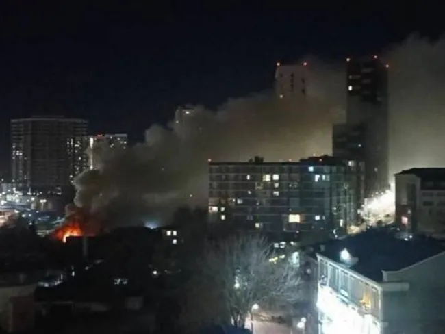 Liga.net relatează că martorii oculari postează primele înregistrări video de pe camerele de supraveghere de pe stradă și fotografii ale flăcărilor la orizont.