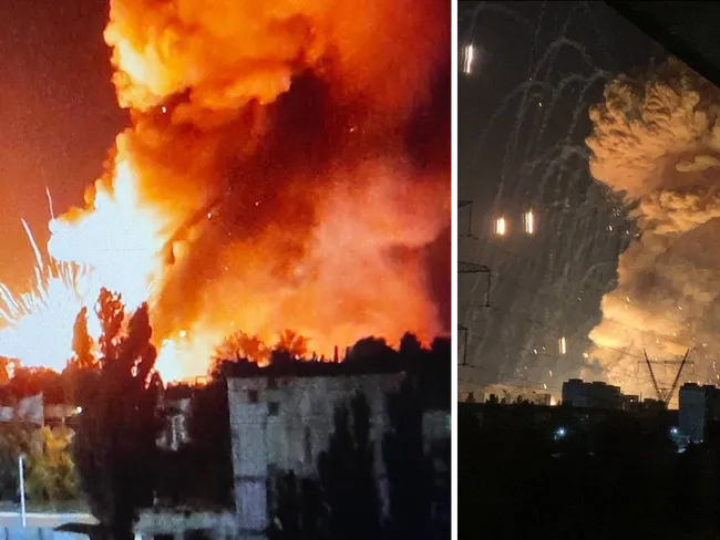 Imagini de pe rețelele de socializare arată o explozie masivă ce pare să fi fost provocată de lovitura ucraineană.