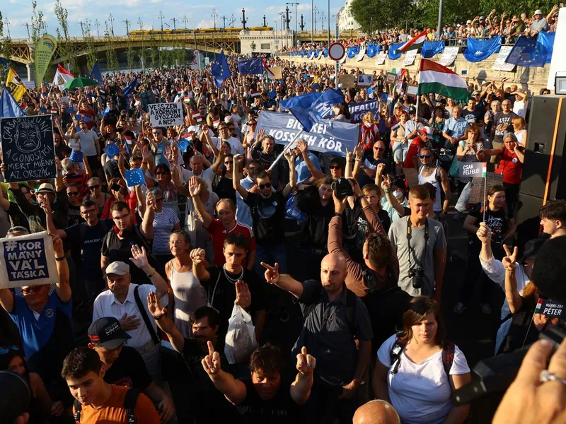"Orban, du-te te dracului!', au scandat unii manifestanţii dintre miile care s-au aflat sâmbătă în centrul Budapestei.