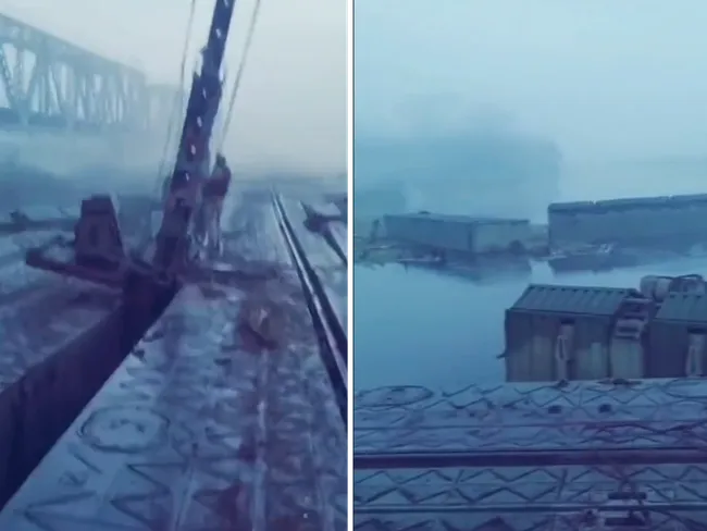 VIDEO HIMARS a distrus podul peste râul Oskil. Vagoane cu muniție rusești plutesc în râu