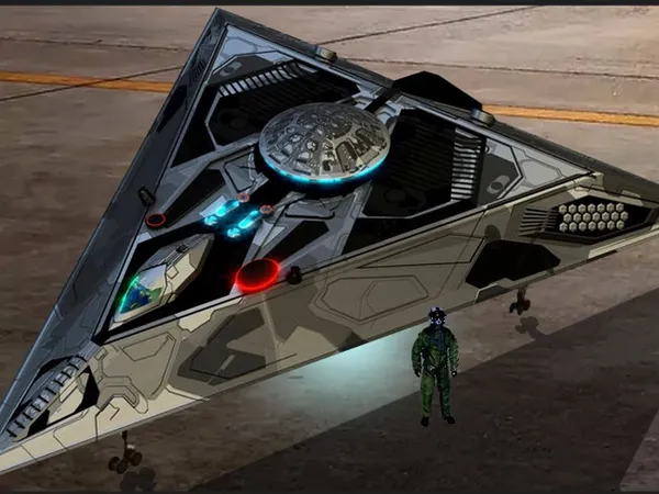 O aeronavă mare, cu formă în „V”, a fost surprinsă de imagini prin satelit în Zona 51, în apropiere de „Hangarul 2014”, nerecunoscut de autorități, aflat la capătul sudic al bazei.