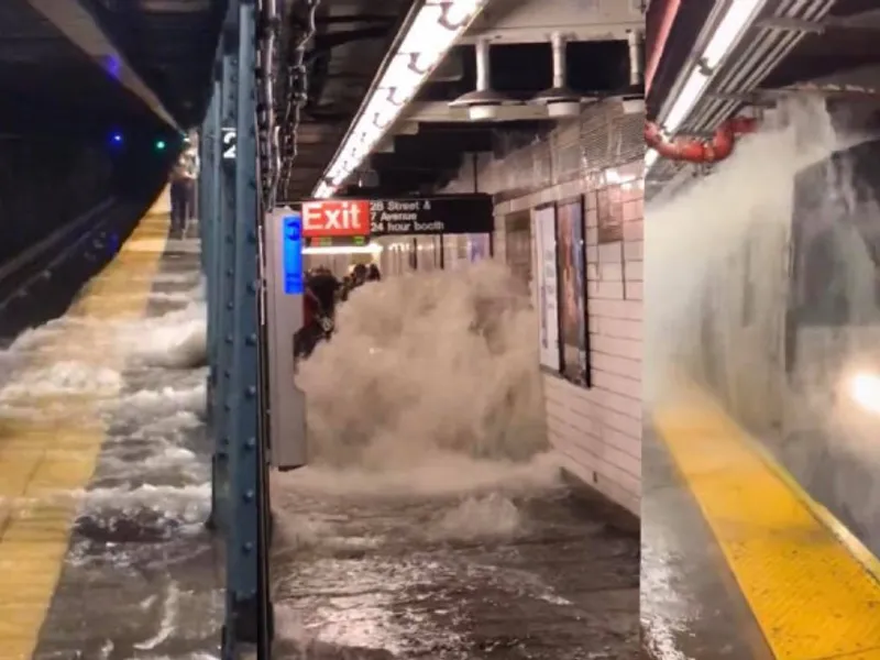 În imaginile de pe reţelele sociale se poate vedea cum apa curge pe peroanele şi trenurile de metrou din New York City. Circulaţia trenurilor de metrou este "limitată'' din cauza inundaţiilor, conform Autorităţii Metropolitane de Transport.