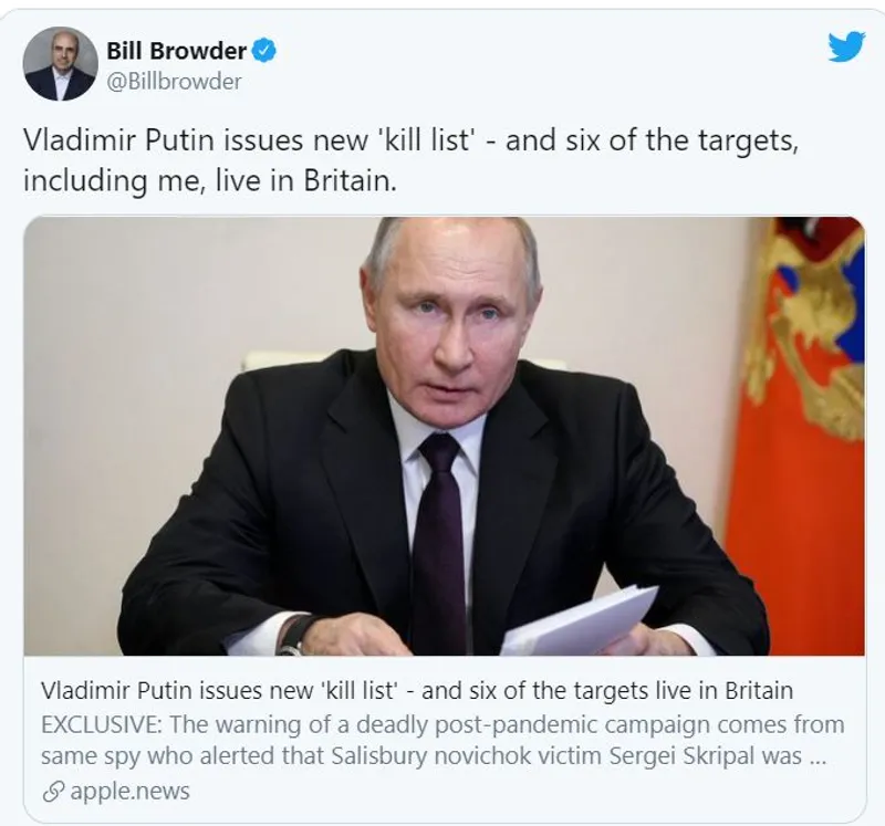 Browder, în vârstă de 56 de ani, este un critic al lui Putin care a fost deportat în 2005, fiind declarat o amenințare la adresa securității ruse.