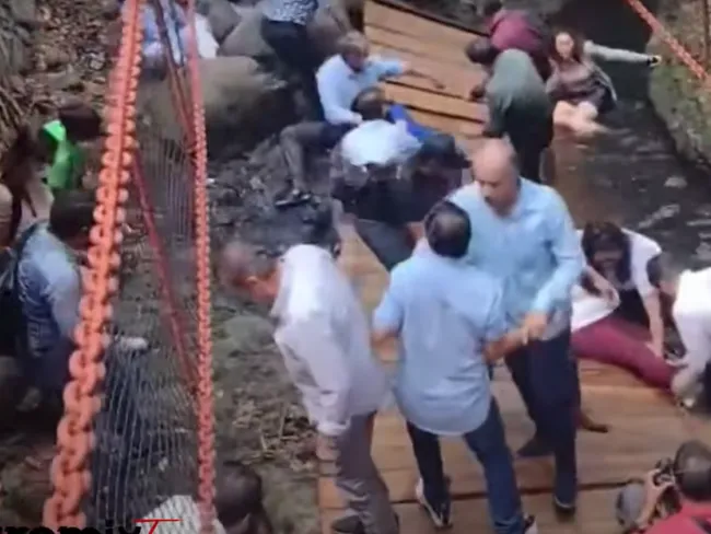 VIDEO Inaugurarea unui pod s-a lăsat cu victime. Structura s-a prăbușit cu zeci de oameni pe el
