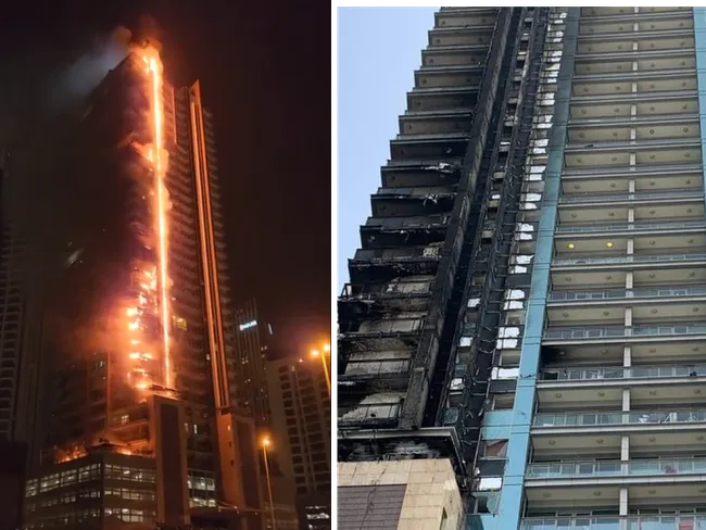 În inima luxosului centru al Dubaiului, o clădire de 35 de etaje a luat foc în această dimineață, izbucnind în flăcări pe toată suprafața sa exterioară și chiar lângă cea mai înaltă clădire de pe planetă.