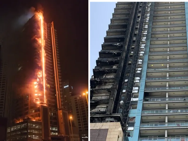 Luni dimineață, clădirea de 35 de etaje din Dubai a luat foc, flăcările biciuind exteriorul turnului.