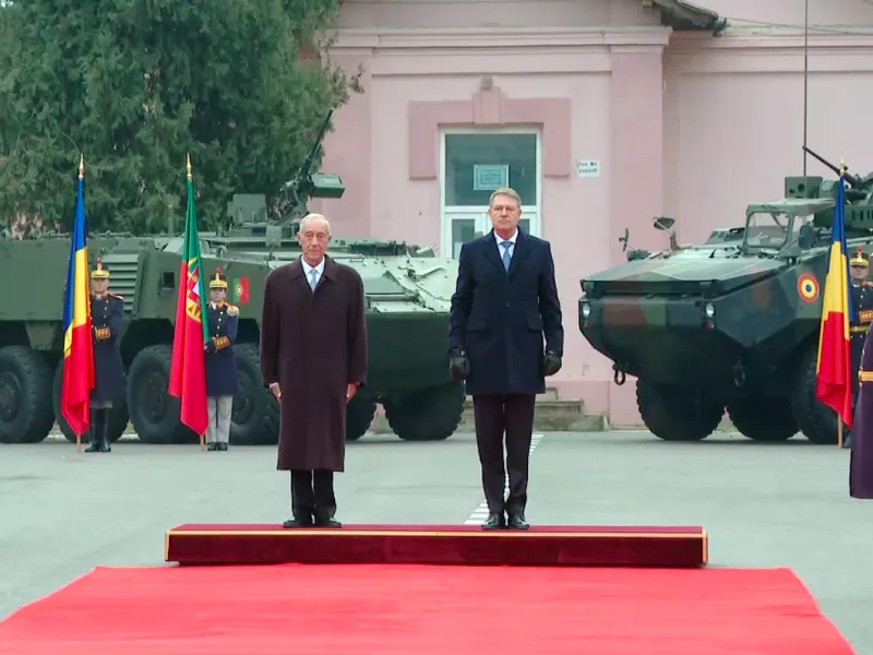 Preşedintele Klaus Iohannis l-a primit, marţi, pe omologul din Republica Portugheză, Marcelo Rebelo de Sousa, cu ocazia vizitei pe care acesta o efectuează în România, la Batalionul 1 Instrucţie "Olt" din Caracal.