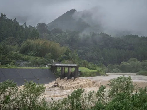 Un râu din prefectura Miyazaki în Kyushu a ieşit din matcă inundând terenuri şi drumuri, potrivit imaginilor difuzate de postul public de televiziune NHK. Într-o altă înregistrare apare o casă de pe malul unui râu pe jumătate suspendată deasupra unui torent, acoperişul din tablă al unei benzinării smuls, un afiş dărâmat de pe o clădire şi atârnând peste stradă.