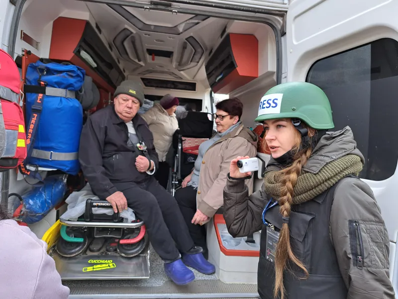 Am întâlnit-o în timpul unei operațiuni a Crucii Roșii ucrainene care a evacuat persoane în vârstă și cu dificultăți de deplasare din orașul Kupyansk, apropiat de linia frontului și bombardat zilnic de către ruși. În timpul celor aproximativ 90 de minute cât ne-am aflat acolo, am auzit 4 explozii puternice.