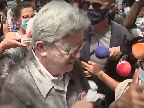Jean-Luc Mélenchon și alte câteva persoane din imediata lui apropiere au fost acoperiți cu făină.
