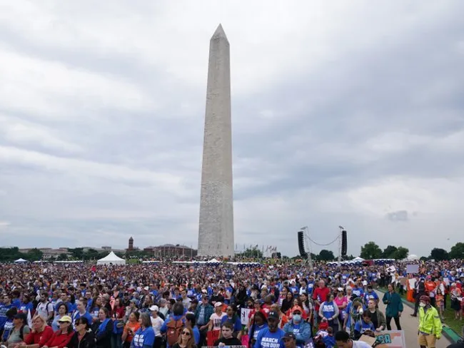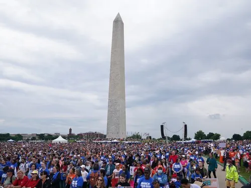 Sâmbătă, primele sute de manifestanţi au ajuns la imensul obelisc din capitala americană. Pe gazonul din apropierea monumentului au fost depuse mii de vaze cu flori albe şi portocalii, reprezentând creşterea violenţei în ţară din 2020, an în care 45.222 de persoane au fost ucise cu armă de foc, potrivit asociaţiei care a ridicat acest memorial, Giffords.