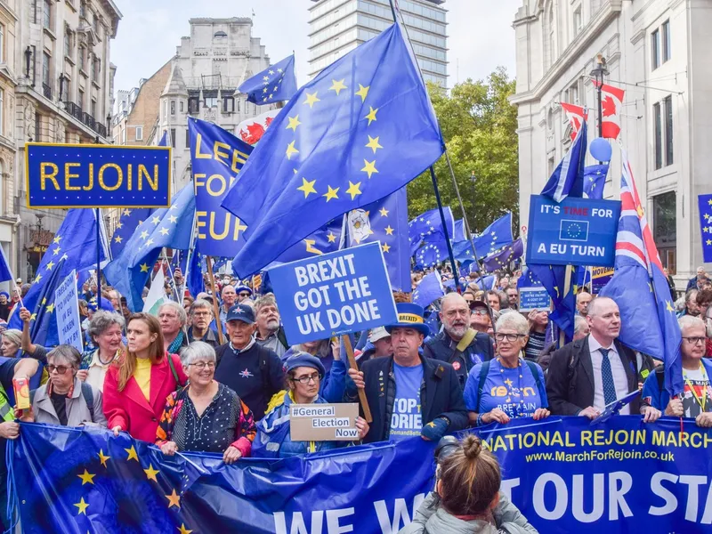 Mii de britanici au mărşăluit sâmbătă prin centrul Londrei cerând ca Marea Britanie să revină în Uniunea Europeană