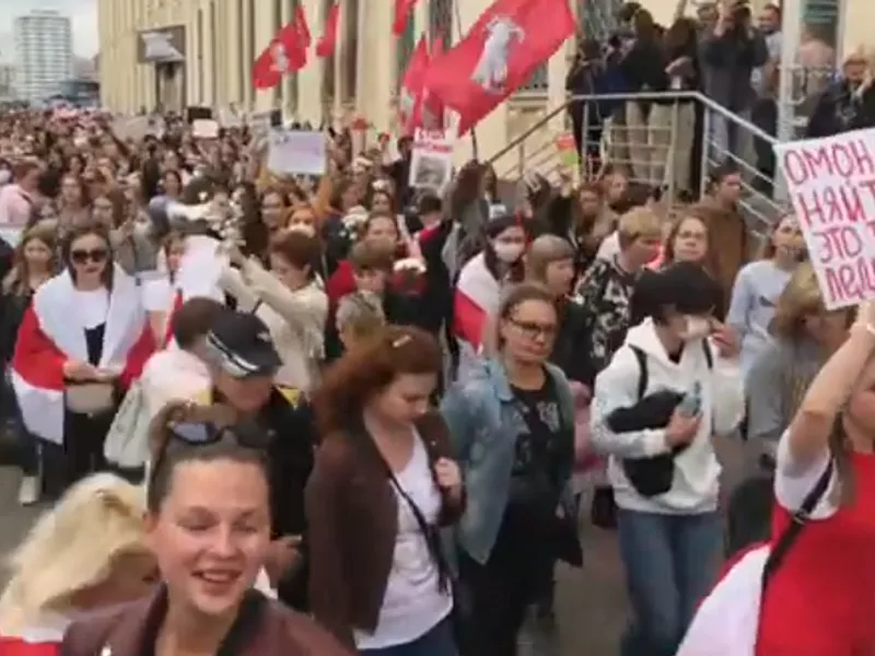 Mii de femei au participat sâmbătă la un nou marş în centrul capitalei Minsk şi în alte oraşe din Belarus împotriva violenţei poliţiei în timpul manifestaţiilor antiguvernamentale care au loc în această ţară de aproape patru săptămâni, transmite EFE.