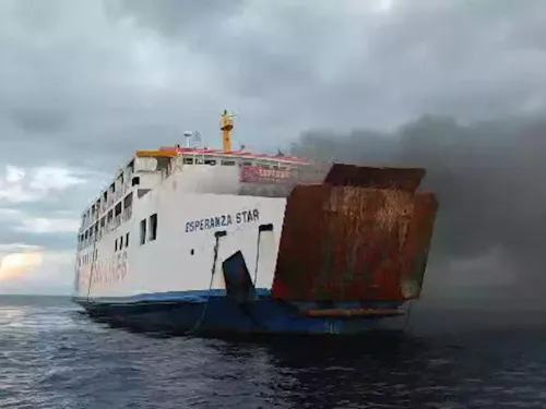 Vasul M/V Esperanza Star, care transporta 65 de pasageri și 55 de ofițeri și membri ai echipajului, a luat foc în timp ce naviga dinspre insula Siquijor, în sud, spre insula Bohol din apropiere, a precizat paza de coastă.