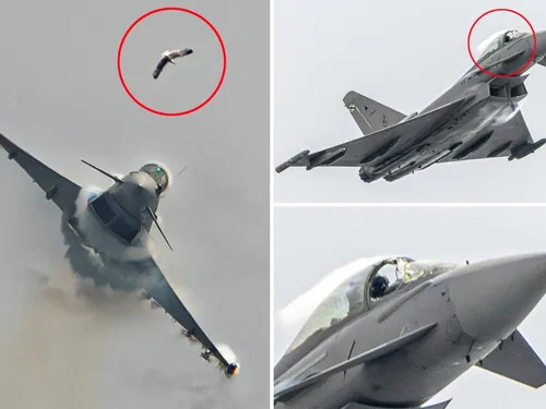 În timpul unei demonstrații, un pescăruș a zburat direct în cabina unui Eurofighter Typhoon, o aeronavă de luptă de ultimă generație, în valoare de aproximativ de 117.000.000 $, potrivit DailyStar.