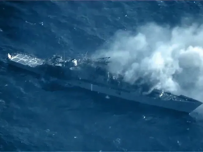 VIDEO Momentul în care armata SUA își „pensionează” o fregată. Scufundată după un atac rachete