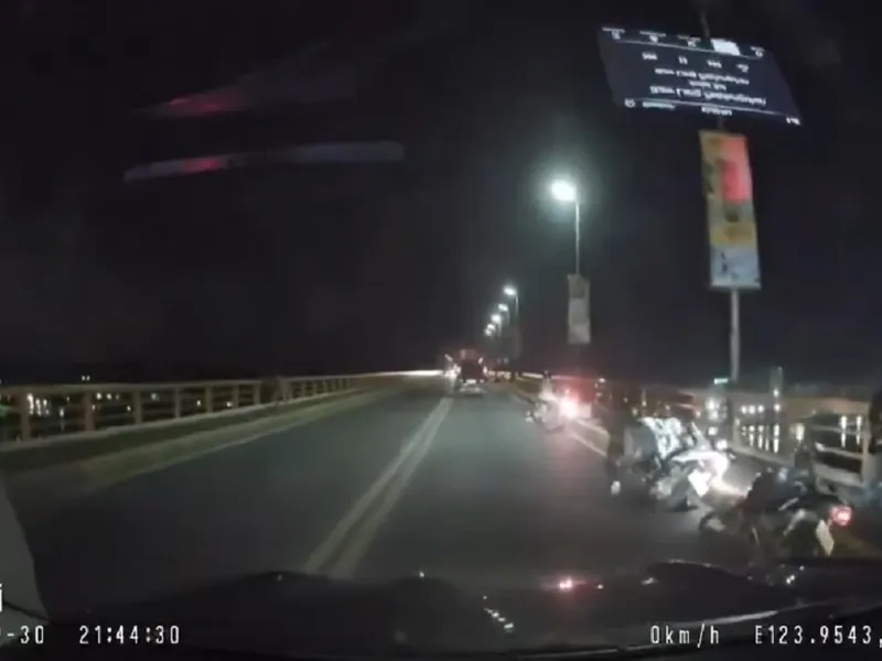 În imaginile publicate pe X se vede cum podul începe să se miște, mai întâi lent, apoi foarte tare. Mașinile opresc. La fel și mai multe scutere care circulau pe pod. Oamenii se așează pe asflat sau încearcă să se țină de balustrada podului.