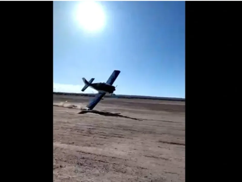 VIDEO Momentul în care un pilot lovește solul cu aripa avionului. Martorii au fost stupefiați