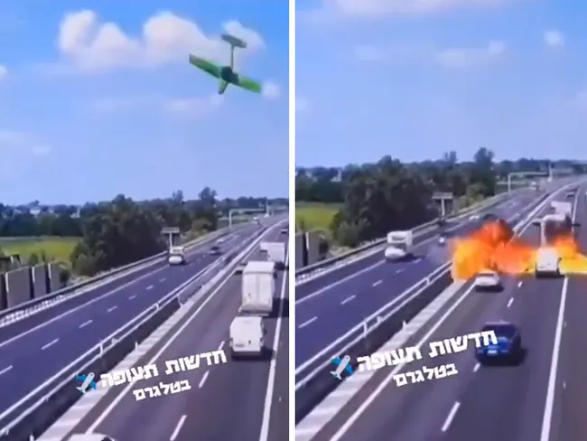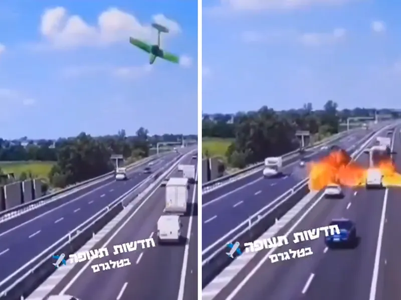VIDEO Momentul șocant în care un avion se prăbușește și explodează pe o autostrada din Italia