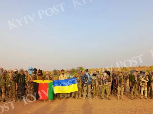 Kyiv Post a obținut luni, 29 iulie, o fotografie exclusivă de la surse din sectorul de apărare și securitate al Ucrainei, care îi arată pe rebelii tuaregi din Mali pozând cu un steag ucrainean după ce tocmai i-au înfrânt pe mercenarii Wagner.