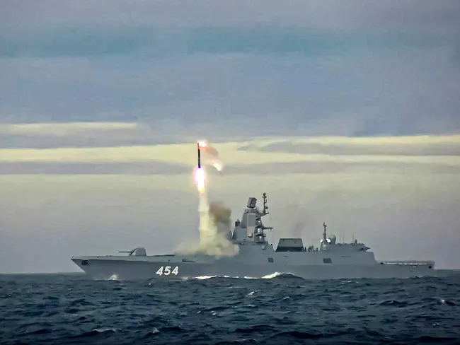Nava rusă este înarmată cu noile rachete Zircon cu capacitate nucleară, care se deplasează la viteze de aproape 7.000 de mile pe oră, precum și cu rachete Kalibr.