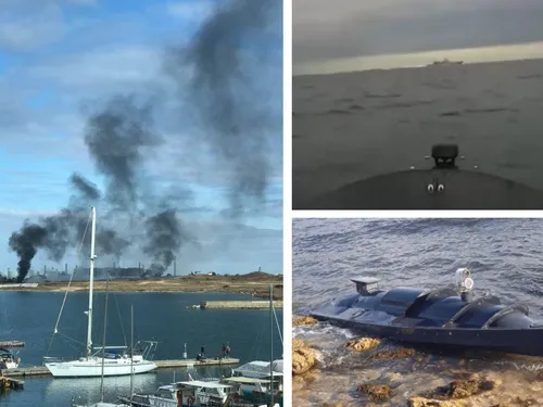 "Din imaginile video, se poate susține cu o probabilitate ridicată că: USV-urile au pătruns prin apărarea golfului Sevastopol. Aproximativ șase drone navă au fost implicate, iar cel puțin trei nave au fost lovite", a concluzionat GeoConfirmat.