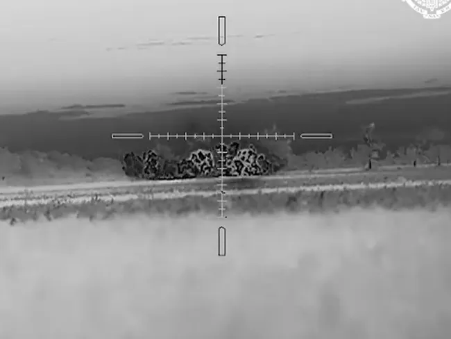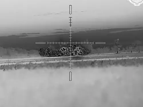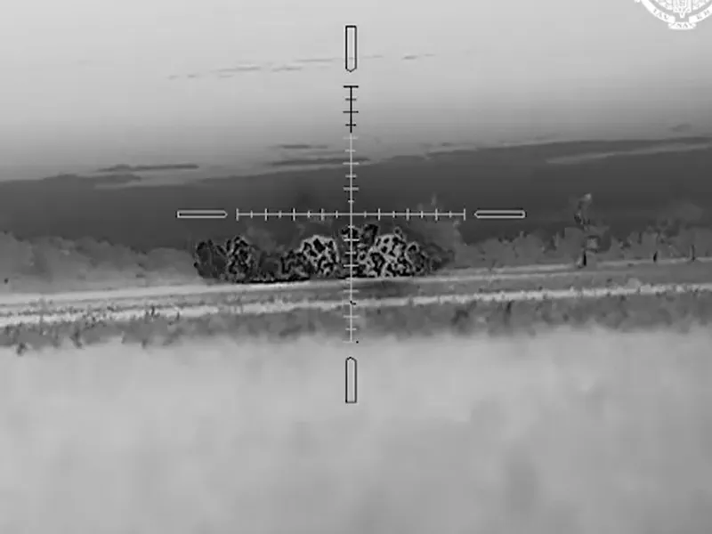 O bombă ucraineană aruncă în aer un vehicul blindat 4X4 de teren probabil Tigr rusesc. Bomba se afla pe marginea drumului, dar vehiculul rusesc pare că a „supraviețuit”.