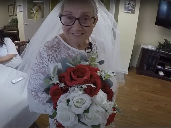 VIDEO O femeie și-a împlinit visul din copilărie la 77 de ani. S-a căsătorit singură într-un azil