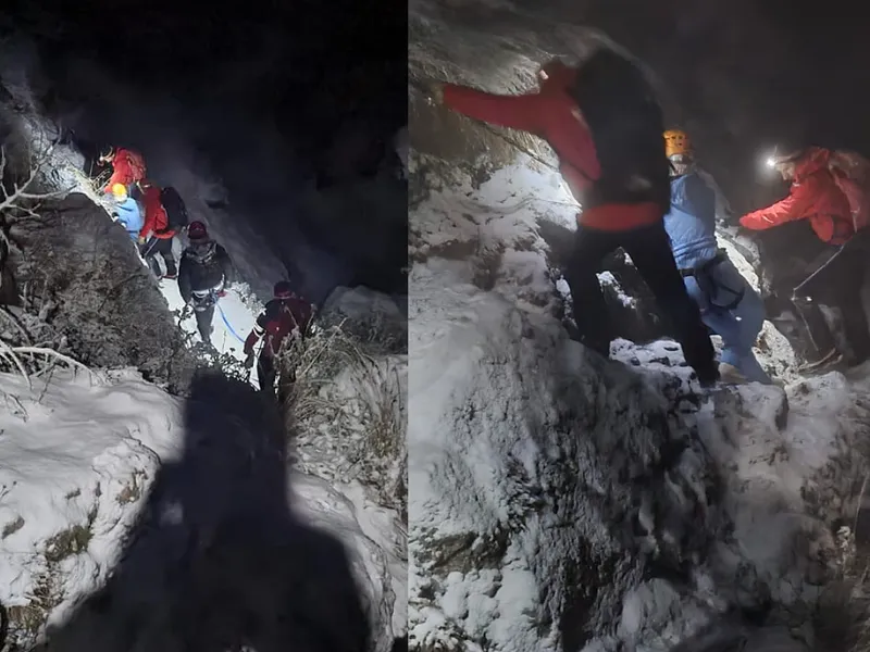 VIDEO Operațiune de salvare în Bușteni. Doi tineri au fost recuperați de pe munte. Voiau la Sfinx