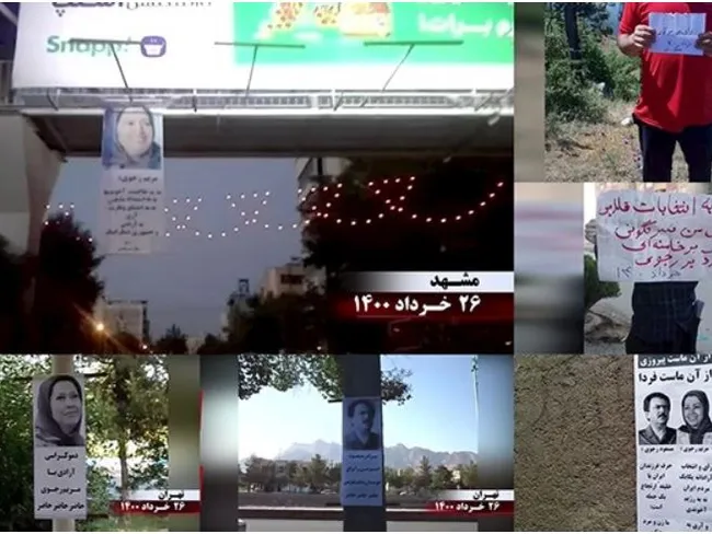 Peste o mie de membri MEK au boicotat alegerile, punând în marile orașe afișe cu liderii rezistenței iraniene - Massoud Rajavi și Maryam Rajavi, președintele ales al Consiliului Național de Rezistență al Iranului (NCRI).