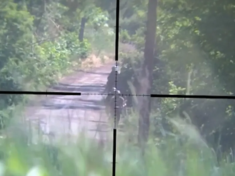 Forțele ucrainene au publicat un videoclip prin care se vede cum un lunetist stă la pândă și așteaptă momentul perfect pentru a deschide focul asupra unui grup de ruși care înainta pe o stradă dintr-o pădure din Ucraina.