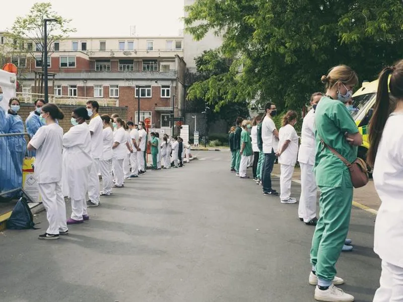 Personalul a protestat astfel împotriva lipsei de resurse a spitalelor şi a decretelor oficiale care pot să-i oblige să lucreze dacă criza de COVID-19 o cere, potrivit presei belgiene.